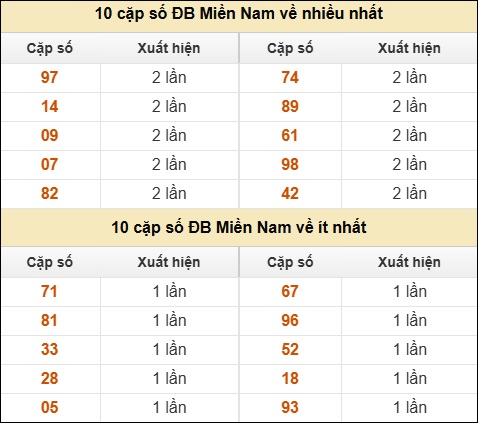 ⚡ 10 cặp số ĐB Miền Nam về nhiều nhất/ ít nhất tính đến ngày 23/10/2025: