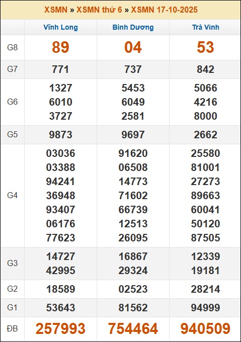 Kết quả xổ số Miền Nam ngày 17/10/2025 thứ 6 tuần trước