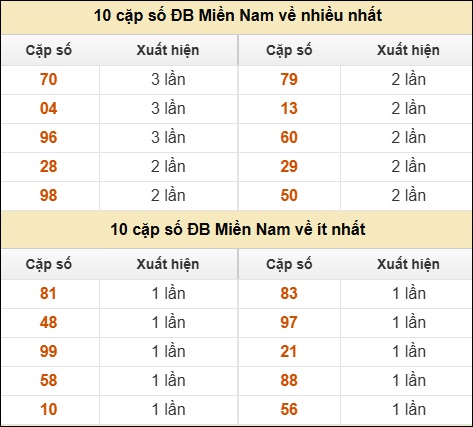 ⚡ 10 cặp số ĐB Miền Nam về nhiều nhất/ ít nhất tính đến ngày 25/11/2025: