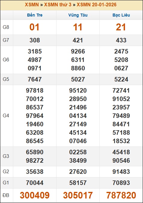 1. ✔️ Xem lại KQXSMN thứ 3 tuần trước 20/01/2026