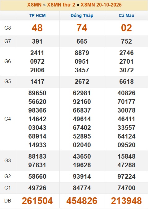1. ✔️ Xem lại KQXSMN Thứ 2 tuần trước 20/10/2025