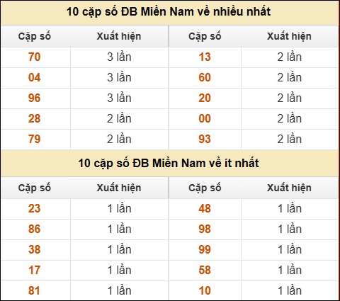 ⚡ 10 cặp số ĐB Miền Nam về nhiều nhất/ ít nhất tính đến ngày 28/10/2025: