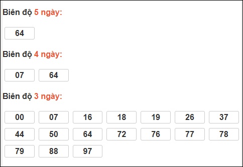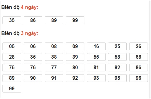 Đuôi 4: 5 ngày, Đuôi 9: 4 ngày, Đuôi 3: 2 ngày, Đuôi 7: 2 ngày, Đuôi 0: 1 ngày