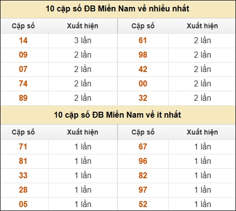 ⚡ 10 cặp số ĐB Miền Nam về nhiều nhất/ ít nhất tính đến ngày 30/10/2025: