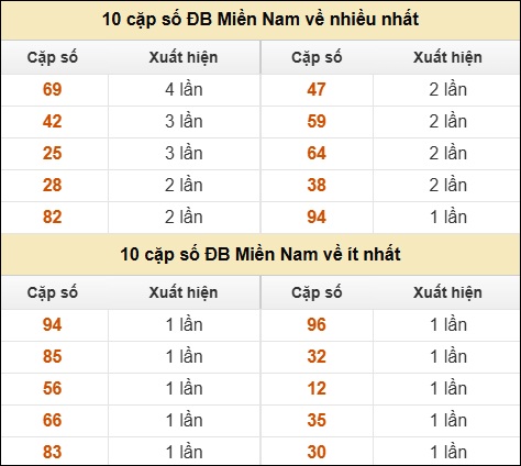 ⚡ 10 cặp số ĐB Miền Nam về nhiều nhất/ ít nhất tính đến ngày 31/10/2025: