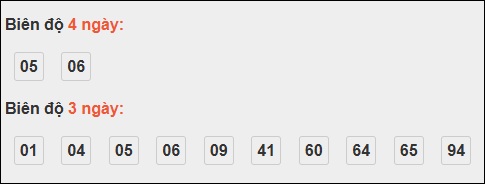 Đuôi 1: 17 ngày, Đuôi 8: 8 ngày, Đuôi 2: 5 ngày, Đuôi 7: 5 ngày, Đuôi 6: 3 ngày