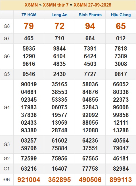 Kết quả xổ số Miền Nam 27/09/2025 thứ 7 tuần trước