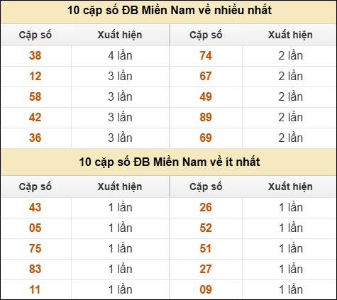 ⚡ 10 cặp số ĐB Miền Nam về nhiều nhất/ ít nhất tính đến ngày 4/10/2025: