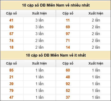 ⚡ 10 cặp số ĐB Miền Nam về nhiều nhất/ ít nhất tính đến ngày 04/02/2026: