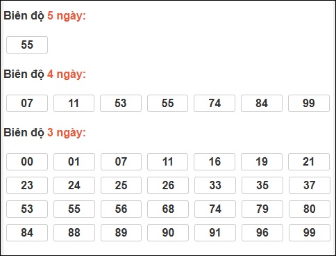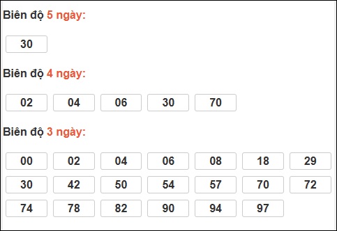 Đuôi 5: 14 ngày, Đuôi 0: 10 ngày, Đuôi 6: 7 ngày, Đuôi 2: 4 ngày, Đuôi 8: 4 ngày