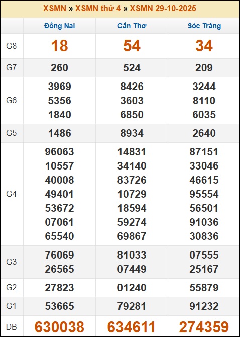 Kết quả xổ số Miền Nam ngày 29/10/2025 thứ 4 tuần trước