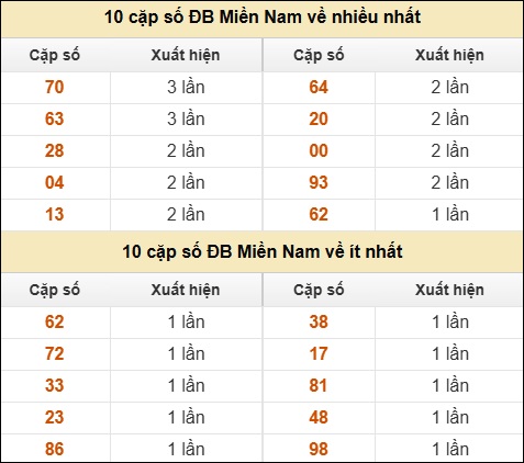 ⚡ 10 cặp số ĐB Miền Nam về nhiều nhất/ ít nhất tính đến ngày 07/10/2025: