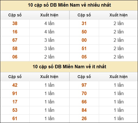 ⚡ 10 cặp số ĐB Miền Nam về nhiều nhất/ ít nhất tính đến ngày 07/02/2026: