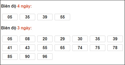Đuôi 4: 5 ngày, Đuôi 5: 4 ngày, Đuôi 7: 2 ngày, Đuôi 2: 1 ngày, Đuôi 3: 1 ngày