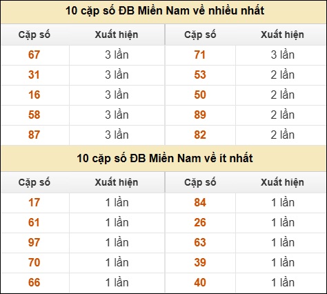 ⚡ 10 cặp số ĐB Miền Nam về nhiều nhất/ ít nhất tính đến ngày 07/03/2026:
