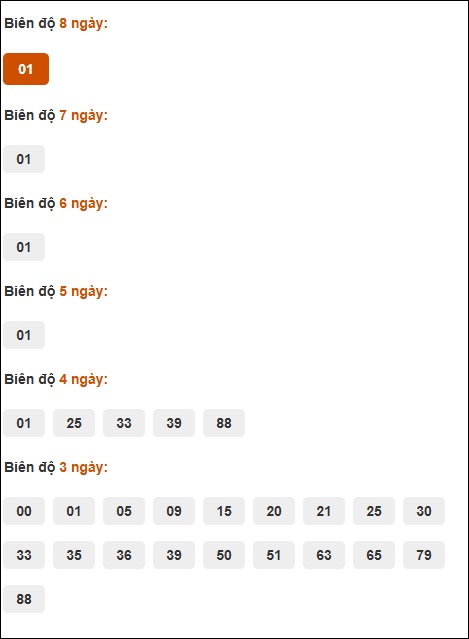 Đuôi 2: 13 ngày, Đuôi 5: 13 ngày, Đuôi 1: 3 ngày, Đuôi 7: 3 ngày, Đuôi 0: 2 ngày