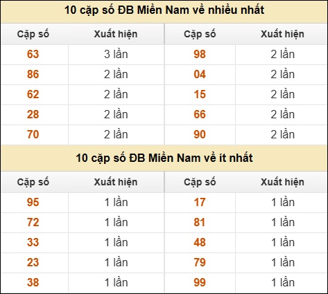 ⚡ 10 cặp số ĐB Miền Nam về nhiều nhất/ ít nhất tính đến ngày 09/09/2025: