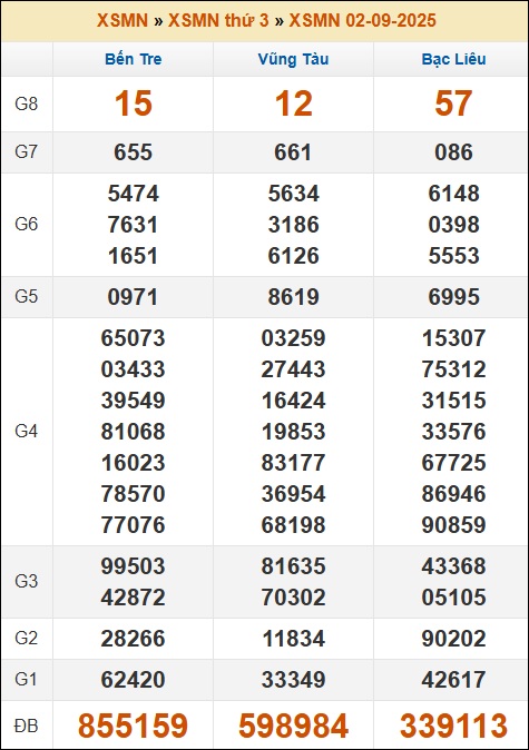 Kết quả xổ số Miền Nam 02/09/2025 thứ 3 tuần trước