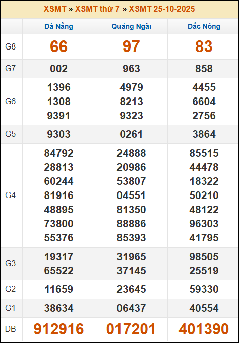 Kết quả xổ số Miền Trung 25/10/2025 thứ 7 tuần trước