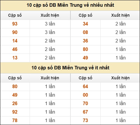 ⚡ 10 cặp số ĐB XSMT về nhiều nhất/ ít nhất tính dến ngày 14/11/2025: