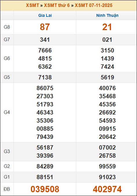 Kết quả xổ số Miền Trung 07/11/2025 thứ 6 tuần trước