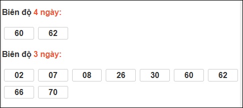 Đầu 6: 5 ngày, Đầu 0: 3 ngày, Đầu 2: 3 ngày, Đầu 5: 3 ngày, Đầu 8: 2 ngày
