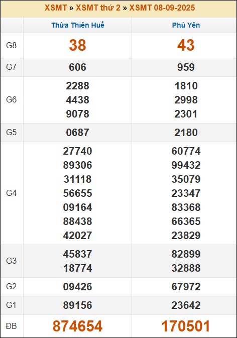 Kết quả xổ số Miền Trung 08/09/2025 thứ 2 tuần trước