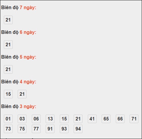 Đuôi 1: 11 ngày, Đuôi 2: 4 ngày, Đuôi 6: 3 ngày, Đuôi 7: 2 ngày, Đuôi 0: 1 ngày