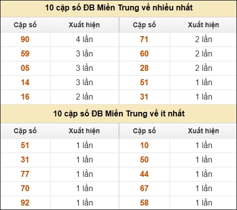⚡ 10 cặp số ĐB XSMT về nhiều nhất/ ít nhất tính đến ngày 16/10/2025: