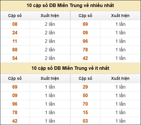 ⚡ 10 cặp số ĐB XSMT về nhiều nhất/ ít nhất tính dến ngày 16/09/2025: