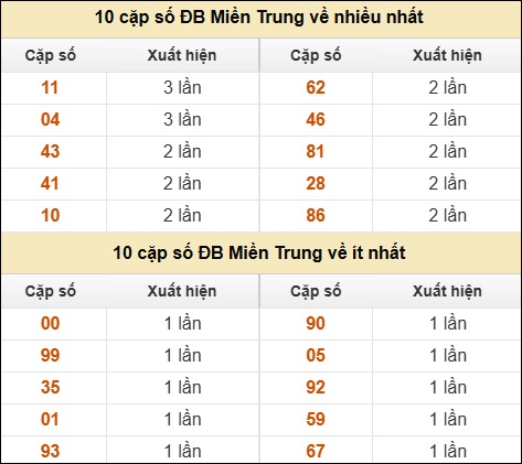 ⚡ 10 cặp số ĐB XSMT về nhiều nhất/ ít nhất tính dến ngày 17/01/2026: