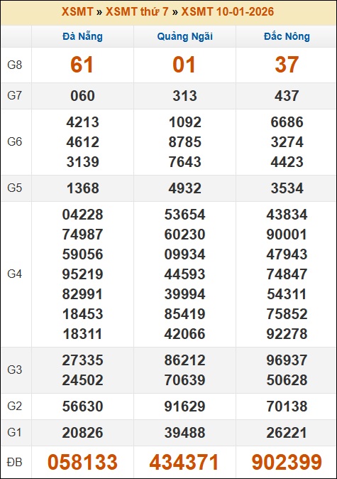 Kết quả xổ số Miền Trung 10/01/2026 thứ 7 tuần trước