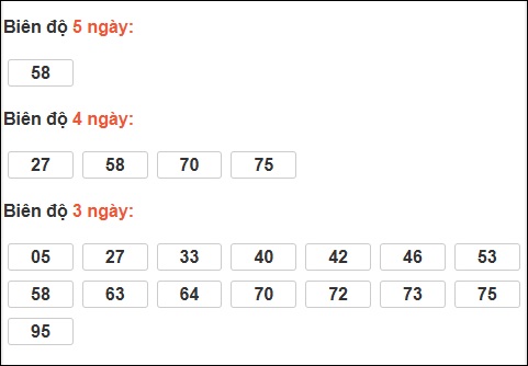 Đuôi 6: 6 ngày, Đuôi 7: 4 ngày, Đuôi 2: 4 ngày, Đuôi 5: 3 ngày, Đuôi 0: 3 ngày