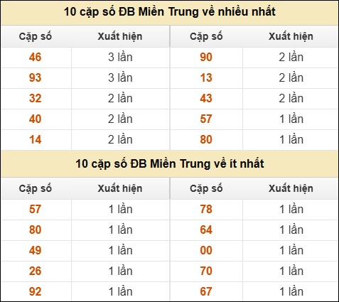 ⚡ 10 cặp số ĐB XSMT về nhiều nhất/ ít nhất tính dến ngày 17/10/2025: