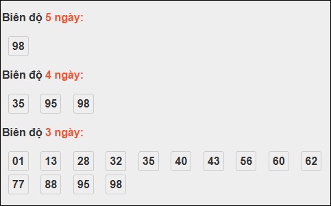 Đầu 5: 17 ngày, Đầu 8: 15 ngày, Đầu 2: 6 ngày, Đầu 0: 5 ngày, Đầu 7: 4 ngày