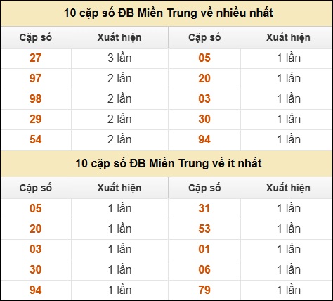 ⚡ 10 cặp số ĐB XSMT về nhiều nhất/ ít nhất tính dến ngày 17/11/2025: