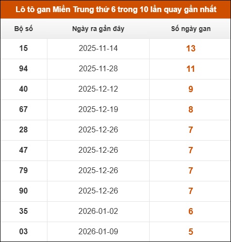 ⚡ Thống kê đuôi GĐB miền Trung lâu ra nhất: