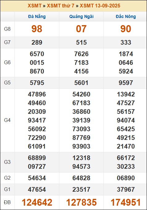 Kết quả xổ số Miền Trung 13/09/2025 thứ 7 tuần trước