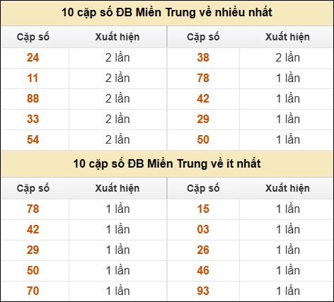 ⚡ 10 cặp số ĐB XSMT về nhiều nhất/ ít nhất tính dến ngày 21/10/2025: