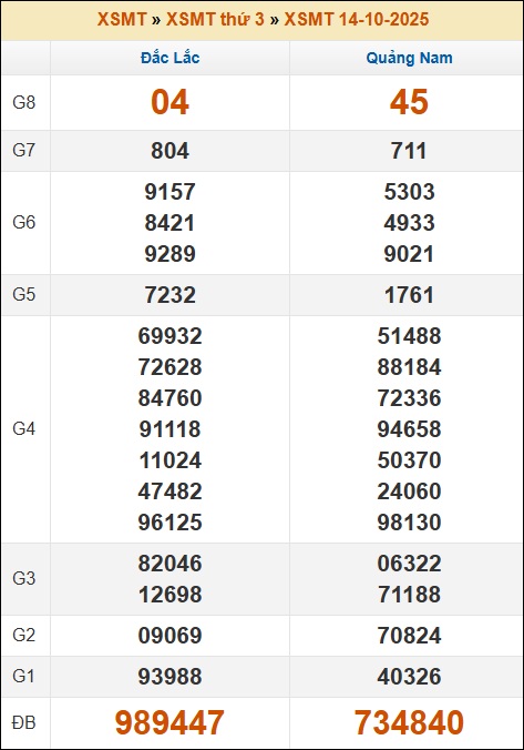 Kết quả xổ số Miền Trung 14/10/2025 thứ 3 tuần trước