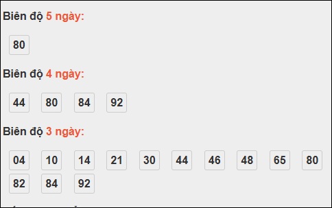 Đuôi 2: 15 ngày, Đuôi 5: 11 ngày, Đuôi 4: 5 ngày, Đuôi 1: 4 ngày, Đuôi 8: 3 ngày