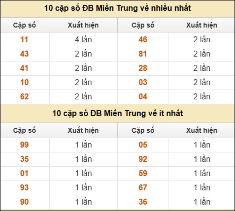 ⚡ 10 cặp số ĐB XSMT về nhiều nhất/ ít nhất tính dến ngày 25/01/2026: