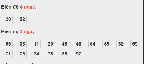 Đuôi 2: 20 ngày, Đuôi 0: 5 ngày, Đuôi 7: 5 ngày, Đuôi 4: 4 ngày, Đuôi 5: 4 ngày