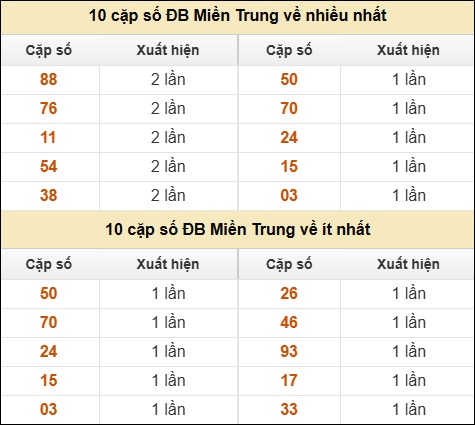 ⚡ 10 cặp số ĐB XSMT về nhiều nhất/ ít nhất tính dến ngày 25/11/2025: