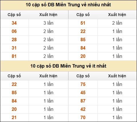 ⚡ 10 cặp số ĐB XSMT về nhiều nhất/ ít nhất tính dến ngày 26/11/2025:
