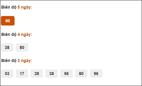 Đuôi 7: 6 ngày, Đuôi 8: 6 ngày, Đuôi 3: 5 ngày, Đuôi 4: 3333 ngày, Đuôi 9: 2 ngày