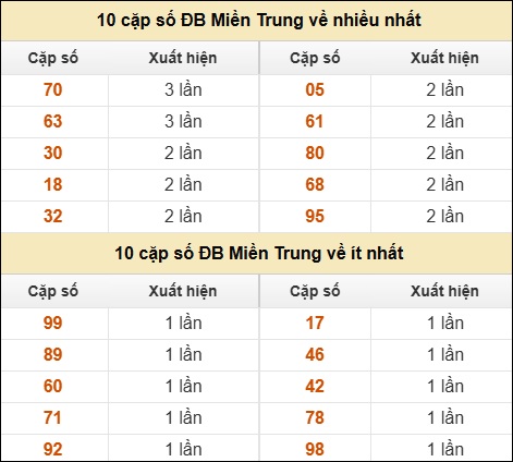 ⚡ 10 cặp số ĐB XSMT về nhiều nhất/ ít nhất tính dến ngày 27/9/2025: