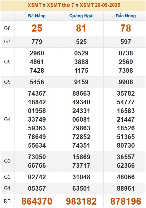 Kết quả xổ số Miền Trung 20/09/2025 thứ 7 tuần trước