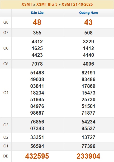 Kết quả xổ số Miền Trung 21/10/2025 thứ 3 tuần trước