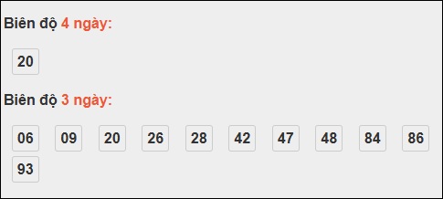 Đuôi 2: 16 ngày, Đuôi 1: 5 ngày, Đuôi 8: 4 ngày, Đuôi 6: 3 ngày, Đuôi 9: 3 ngày